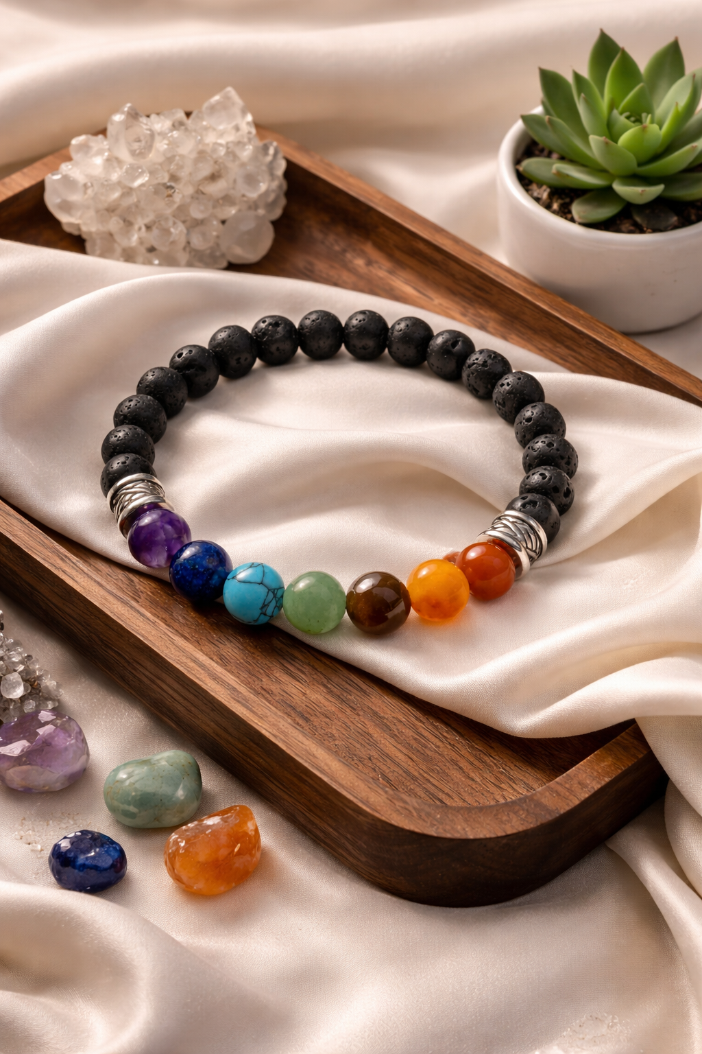 β¨ Elegant & Meaningful A Lava Stone Chakra Bracelet that blends modern elegance with intentional energy. The matte black lava beads offer a naturally textured, minimalist look while grounding your spirit with the steady strength of volcanic earth. Seven vibrant chakra stones add a graceful touch of color and symbolism, each representing balance, clarity, and emotional wellβbeing. Lightweight, versatile, and beautifully understated, this bracelet is perfect for anyone who wants their accessories to carry both style and purpose. It’s a timeless piece that complements any outfit while supporting a centered, harmonious state of mind.